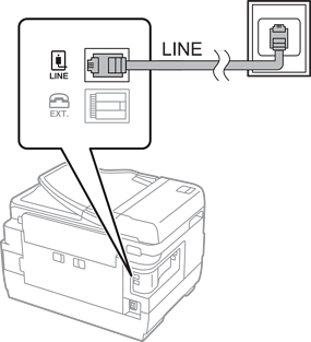 電話回線やPBXポートと、プリンター背面部のLINEポートをモジュラーケーブルで接続します。