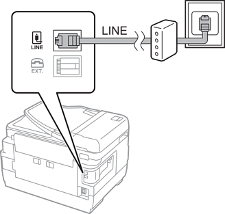 ADSLモデムまたはISDNターミナルアダプターと、プリンター背面部のLINEポートをモジュラーケーブルで接続します。詳しくはモデムやターミナルアダプターのマニュアルをご覧ください。
