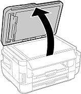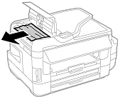 ADF給紙トレイを上げて、詰まっている用紙を取り除きます。