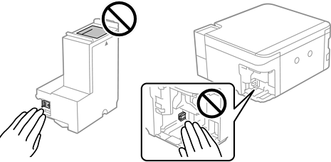 イラストで示した部分には触らないでください。プリンターが正常に動作しなくなったり、インクが付着したりするおそれがあります。