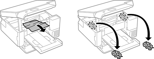 内部に手を入れるときは、操作パネルのボタンには触らないでください。プリンターが動作してけがをするおそれがあります。また、突起などでけがをしないように注意してください。