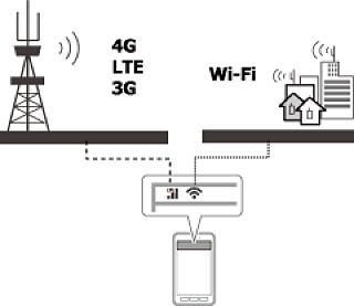 スマートフォンのテザリング機能やモバイルルーターを使って、Wi-Fiで接続した機器をモバイルデータ通信回線に中継する