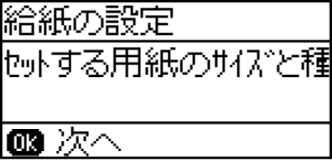 7 操作パネルに表示された現在の用紙サイズと用紙種類の設定を確認して、OKボタンを押します。