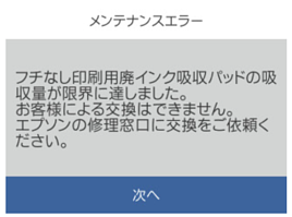 以下の画面が表示されたときは、お客様による交換はできません。エプソンの修理窓口に交換をご依頼ください。