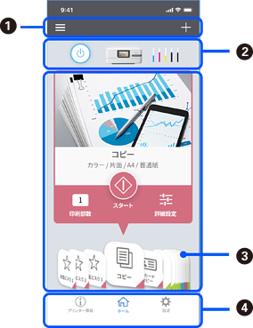スマートデバイスでEpson Smart Panelを起動して、ホーム画面で使いたい項目を選択します。