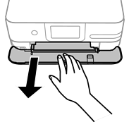 プリンターが動作していないことを確認して、用紙トレイを引き出します。