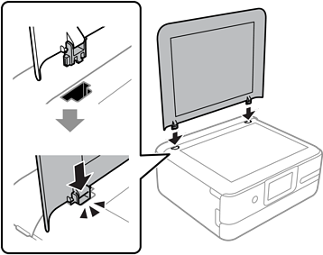 手差し給紙カバーを開け、原稿カバーのツメをまっすぐにした状態で、垂直に挿してください。