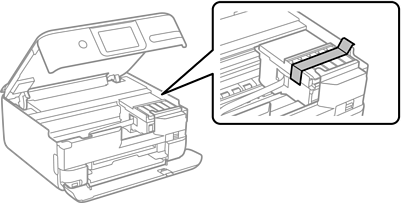 輸送後や保管後はインクタンクを固定したテープを剥がします。