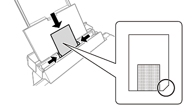クリーニングシートのコーナーカット(切り欠け部)を右下にして、背面トレイにセットします。用紙ガイドを用紙の側面に合わせます。