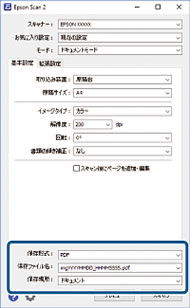 • 保存形式:スキャンした画像の保存形式を選択します。