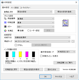 • 用紙種類:セットした印刷用紙の種類を選択