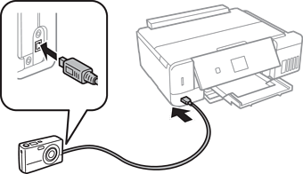デジタルカメラの電源を入れてから、USB ケーブルでプリンターと接続します。