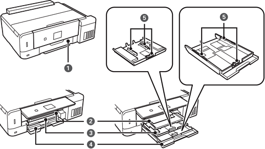 印刷された用紙を保持します。手で引き出し、収納するときは手で押して戻してください。 |