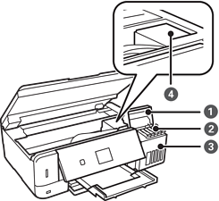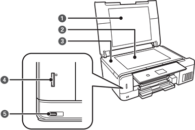 原稿をスキャンします。インクタンクにインクを補充するときや内部に詰まった用紙を取り除くときに開けます。通常は閉めておいてください。 |