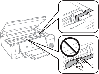 7. 原稿カバーを閉めた状態でスキャナーユニットを開けて、プリントヘッドが動かないように市販のテープなどでしっかり固定します。