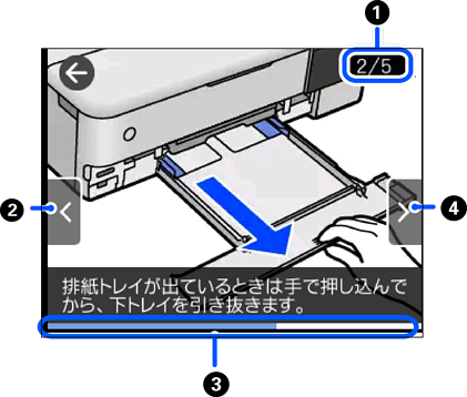 1手順の進行状況を表示します。プログレスバーが右端に達すると、手順の最初に戻って再生します。