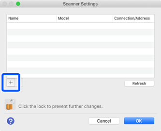 Si su escáner no aparece en la lista, debe añadirlo a la red. Haga clic en el icono .