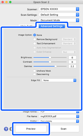 Pengaturan yang ditampilkan di layar mungkin berbeda untuk setiap produk. Baca bantuan Epson Scan 2 untuk mengetahui penjelasan setiap pengaturan.