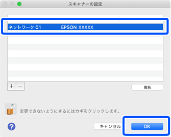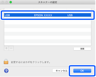 6[スキャナーの設定]画面で追加されたスキャナーを選択し、[OK]をクリックします。