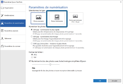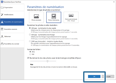 Si vous voulez numériser d’autres types de photos après la numérisation, modifiez le type de photos sous l’onglet Paramètres de numérisation.