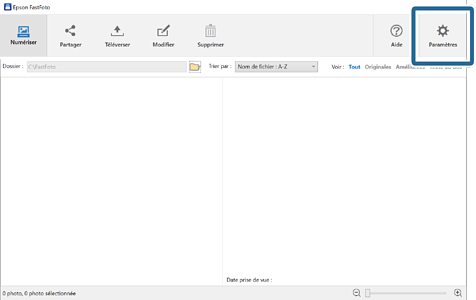 Modifiez les paramètres avant la numérisation. Cliquez sur Paramètres à l’écran principal.