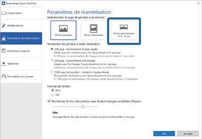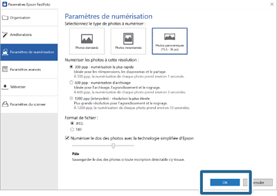 Si vous voulez numériser d’autres types de photos après la numérisation, modifiez le type de photos sous l’onglet Paramètres de numérisation.