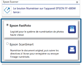 Sélectionnez l’application qui s’ouvre lorsque vous appuyez sur le bouton de numérisation.