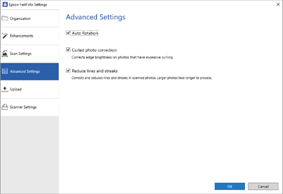 Můžete měnit pokročilá nastavení skenování, jako je otáčení fotografie, skenování zadní strany a další.