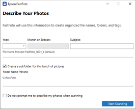 تنظیمات ذخیره را در صفحه Describe Your Photos تنظیم کنید.