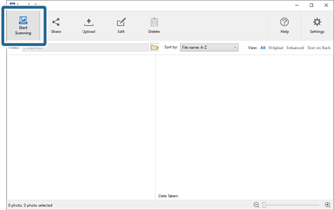 Dopo la scansione, è possibile condividere, caricare o modificare le immagini usando Epson FastFoto. È possibile anche modificare l’impostazione di visualizzazione delle miniature.