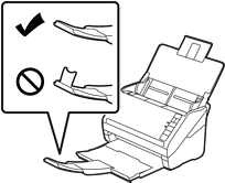 Non estendere le prolunghe del vassoio di alimentazione e del vassoio di uscita e non sollevare il fermo.