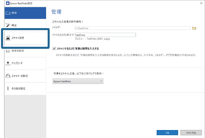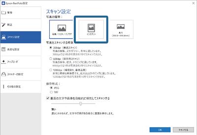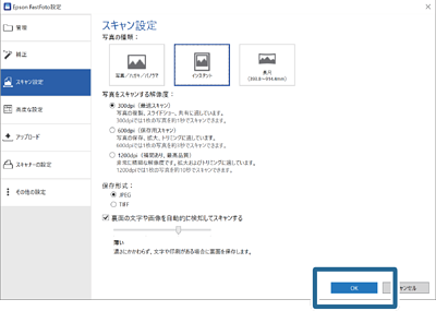 スキャンした後、別の種類の写真をスキャンしたいときは、[スキャン設定]タブで写真の種類を変更してください。