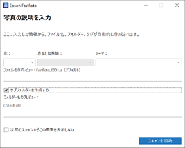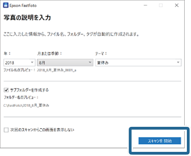 Epson FastFotoのメイン画面で[スキャンを開始]をクリックしても開始できます。