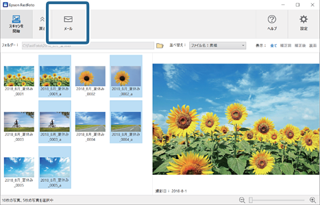 メールソフトウェアをセットアップしていない場合、セットアップするように案内されます。Epson FastFotoはGmailなどウェブベースのメールには対応していません。