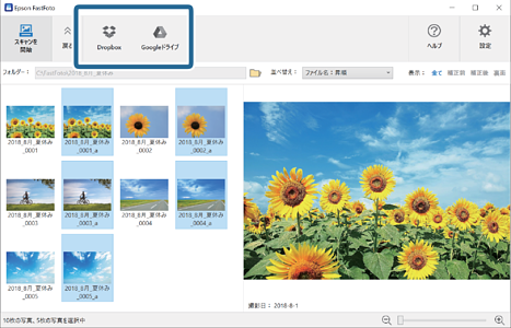 スキャンの後、画像をすぐに自動的にアップロードできます。メイン画面で[設定]をクリックし、[アップロード]タブをクリックして、画像をアップロードするサービスのアイコンを選択します。