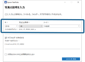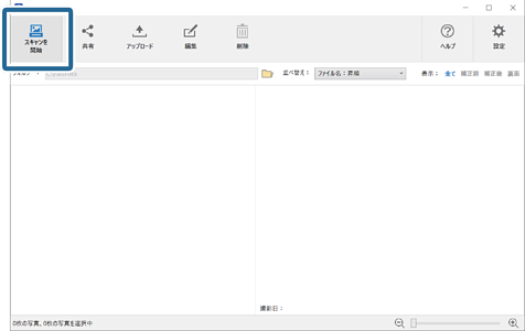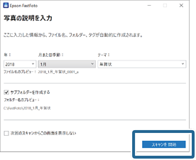 ボタンを押すか、Epson FastFotoのメイン画面で[スキャンを開始]をクリックします。