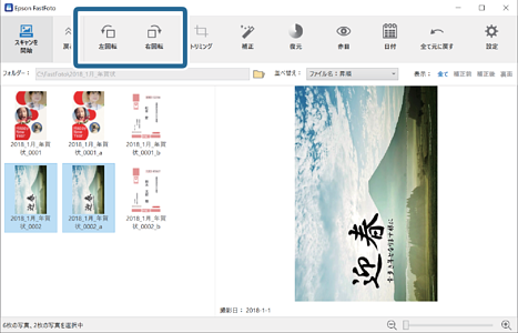 [左回転]または[右回転]をクリックして、正しい向きに回転させます。