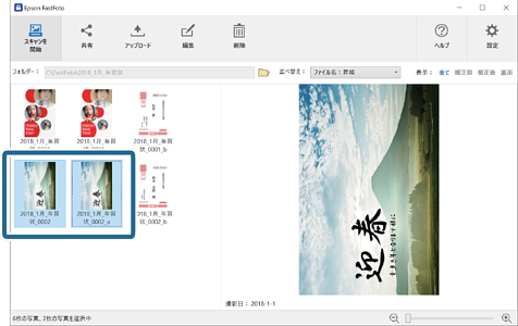 ハガキの宛名面をスキャンしたときは、ファイル名の最後に"_b"がついて保存されます。