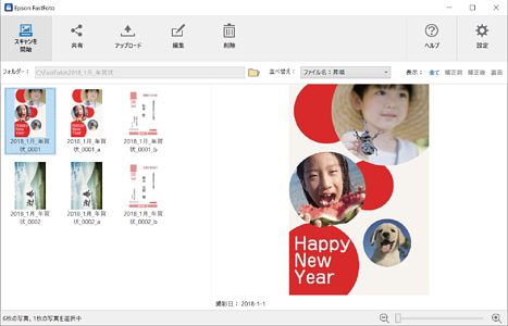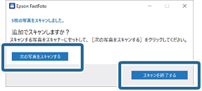 セットしたハガキのスキャンが終了したら、[次の写真をスキャンする]をクリックして追加でスキャンするか、[スキャンを終了する]をクリックしてスキャンを完了します。