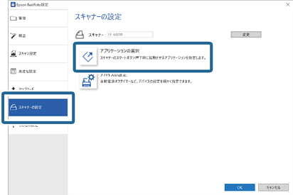 スキャナーの ボタンを押したときに起動するソフトウェアを選択します。