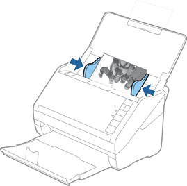 Zsunąć prowadnice boczne, tak aby dopasować do krawędzi zdjęć, pilnując, aby między nim a prowadnicami bocznymi nie było pustej przestrzeni. W przeciwnym razie zdjęcia mogą zostać podane krzywo.
