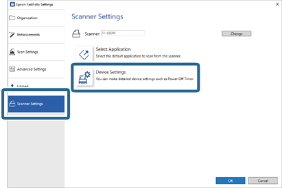 Faceţi clic pe Setări dispozitiv în fila Setări scaner.