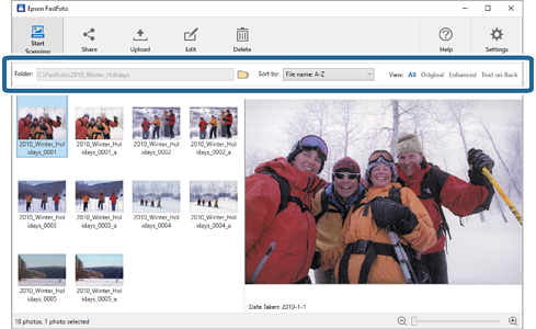 Вы можете изменить отображаемую папку и вид эскизов в ней.