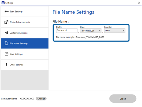 Galite keisti pavadinimo failui suteikimo metodą.