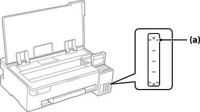 如果墨水未流入墨仓中,请取下墨瓶,然后重新插入。但是,如果墨水已到达上线,请勿插拔墨瓶;否则,如果墨水超过上线,墨水可能会泄漏或可能导致本产品损坏。