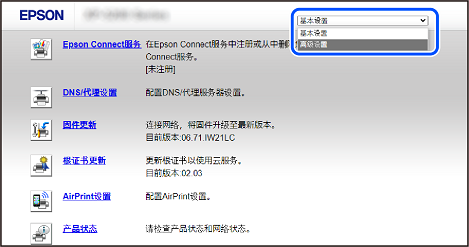 Web Config 的显示内容和项目因型号而异。