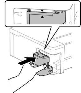 Vstavite novo vzdrževalno škatlico do konca v tiskalnik. Škatlico morate vstaviti v pravilni usmerjenosti.