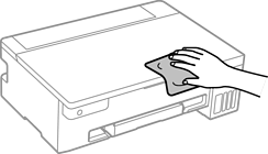 Če so komponente in ohišje umazani ali prašni, izklopite tiskalnik in ga očistite z mehko, čisto krpo, ki ste jo navlažili z vodo. Če umazanije ne morete odstraniti, vlažni krpi dodajte majhno količino blagega detergenta.