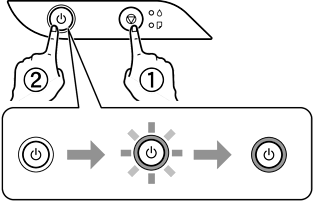 3. قم بتشغيل الطابعة بالضغط مع الاستمرار على الزر ‏،  ثم حرر الأزرار عندما يومض مصباح الطاقة.