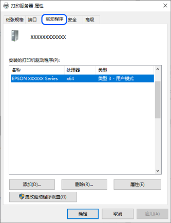 单击驱动程序标签。如果本产品名称显示在列表中,则表明您的计算机上已安装了正版爱普生打印机驱动程序。